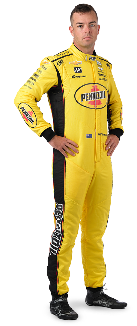 Scott McLaughlin, the 2021 NTT INDYCAR SERIES and Indianapolis 500 Rookie of the Year, returns to Team Penske in 2025. A three-time Australian V8 Supercars champion, he won the 2024 Indy 500 pole and ranks third on Team Penske’s all-time wins list. McLaughlin is also the team’s leader in pole positions and won the 2019 Bathurst 1000. Off track, he’s married to Karly, with a daughter, Lucy, born in October 2024, and two dogs, Chase and Luna. He enjoys football, iRacing, golf, and playing weekly rounds with NASCAR teammate Ryan Blaney. His racing heroes are Rick Mears and Greg Murphy.